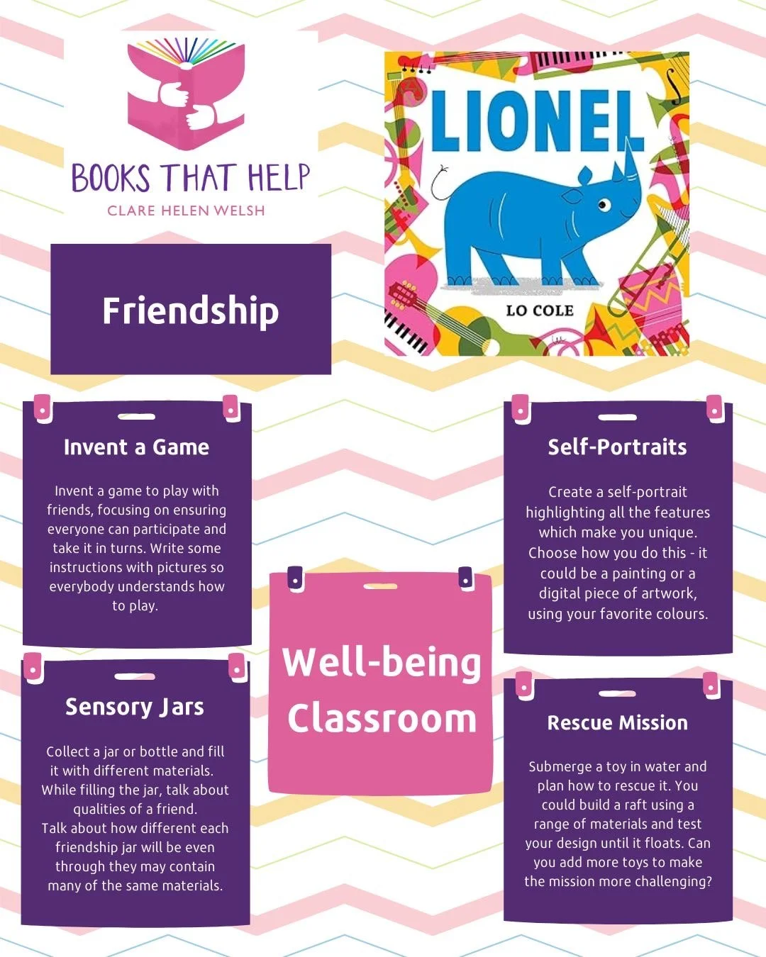 A selection of resources designed to be used at home or in a classroom environment linked to some of our favourite Books That Help (Coming soon!)